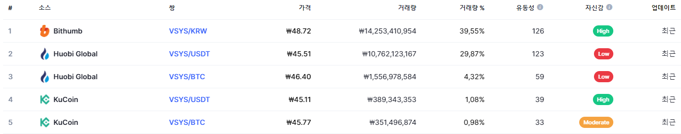 한국에서는 빗썸에서 거래가 가능하며 총거래량의 40% 정도가 거래가 있다.