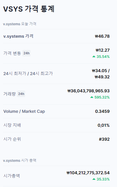 상승세인 브이시스템즈 코인정보를 보려 합니다.