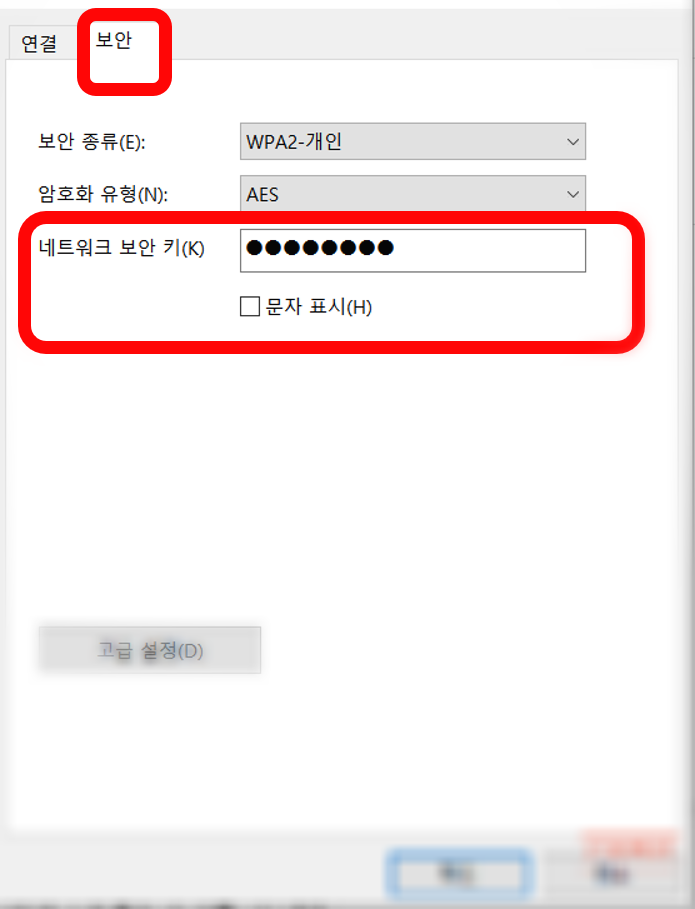 그리고 밑에 네트워크 보안 키 보이시죠?